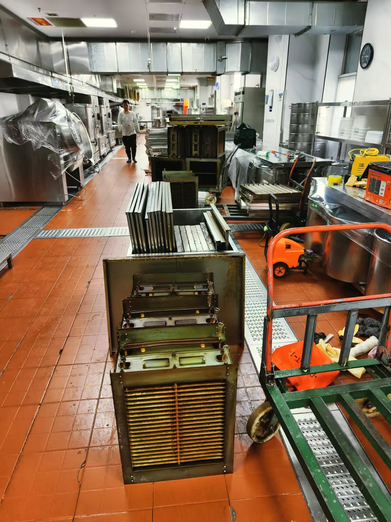 小吃城商户密集、油烟量大,大型油烟管道承担着高频次排烟任务,管道内油垢堆积快、堵塞风险高。排烟不畅,商户间油烟相互串扰,影响菜品风味,整个小吃城油烟弥漫,顾客体验差;油垢堆积导致风机吸力下降、噪音增大,后厨操作受影响,还存在安全隐患,一旦出现问题,会影响整个小吃城的经营秩序。小吃城经营灵活、客流集中,大型油烟管道的定期清洗,是维持良好经营氛围、保障商户生意的重要举措。